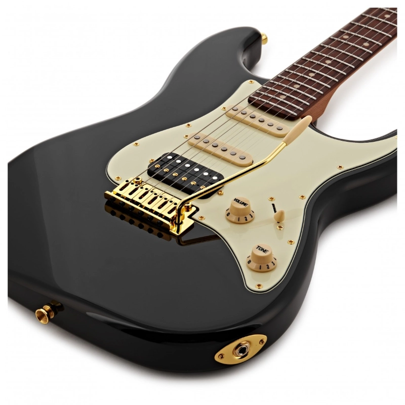 Il sistema di pickup HSS Alnico V Custom Model combina la brillantezza dei single coil con la potenza dell’humbucker al ponte, offrendo una gamma timbrica ampia e versatile. I controlli 1 Volume, 1 Tono e selettore a 5 posizioni permettono di modellare il suono con grande precisione, passando facilmente da sonorità pulite e cristalline a timbri più aggressivi e ricchi di sustain.